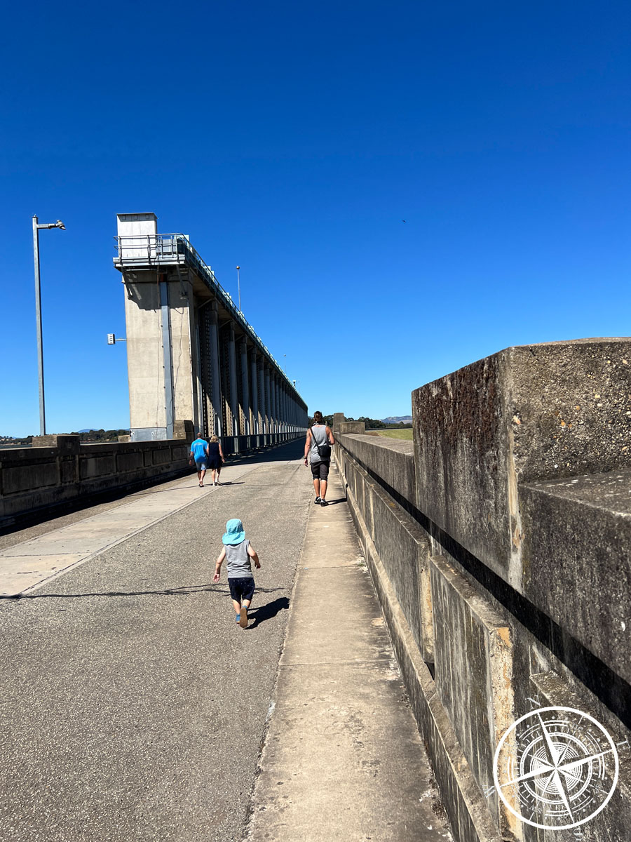 Am nächsten Tag ging es für uns am Vormittag zum “Hume Dam”. Der war etwa 20 Minuten von unserer Unterkunft entfernt. Das war das erste Mal, dass unser Sohn einen Damm gesehen hat. Vor lauter Aufregung ist er dann beim Rennen gestolpert und direkt auf die Knie gefallen. Das hat die Stimmung etwas gekippt, aber irgendwann hatte er sich dann wieder beruhigt.