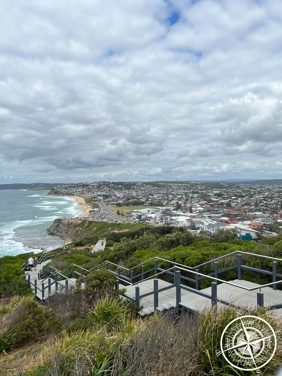 Somit starteten wir am „Newcastle Memorial Walk„, einer ca. 160 Meter langen Brücke mit Aussichtspunkt und einer langen Treppe, die zu dem 6km langen Coastal Walk führt. Für uns reichte hier die Brücke mit Aussicht zum bestaunen der Klippen und auf der anderen Seite Blick zur Stadt. Es war ein eher kurzer Stop bei noch mäßigem Wetter und nach kurzer Recherche zum bestmöglichsten nächsten Ziel ging es wieder zum Auto (man findet mit Glück direkt oben bei der Brücke einen freien Parkplatz – so wie wir!).