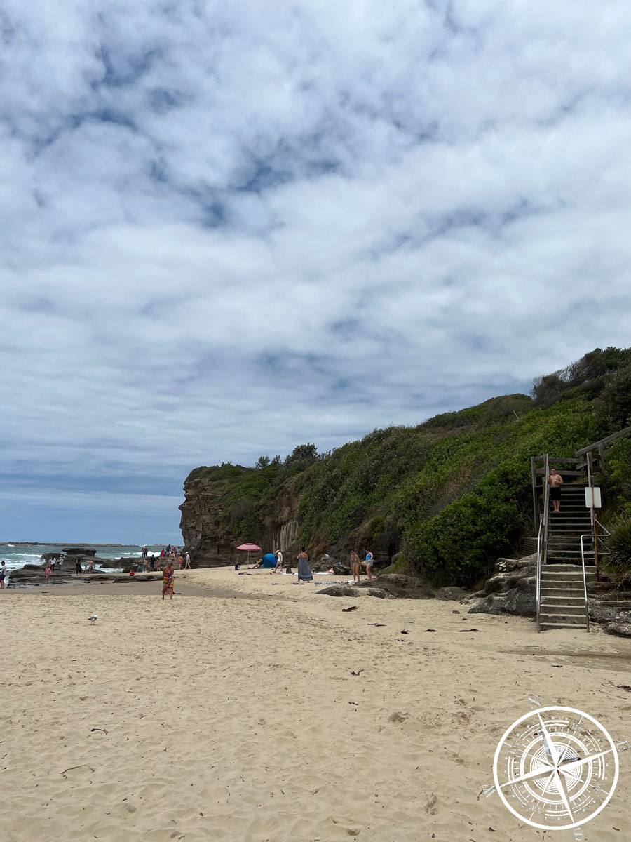 Auf dem Rückweg warfen wir noch bei einer Snackpause den Surfern am Strand einen Blick zu, bevor es dann wieder ins Auto ging. Es folgte eine Fahrt durch Newcastle und dann ging es weiter gen Süden. Vivi hatte als nächsten Spot „Caves Beach“ rausgesucht. Hierbei ging es aber eher weniger um einen Strandaufenthalt, als eher um die im Namen enthaltende Höhle.