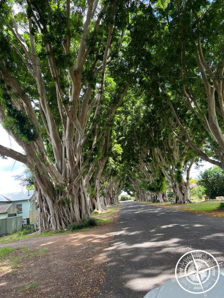 Auf dem Rückweg fuhren wir noch kurz durch die „Fig Tree Avenue“, einer Allee aus großen Feigenbäumen und an einigen „Jacaranda“ Bäumen vorbei. Für diese im Oktober lila blühenden Bäume ist Grafton wohl auch bekannt.