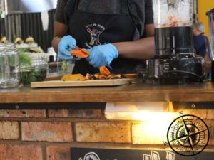 Hier haben wir uns als erstes einen Smoothie für jeweils R50 (ca. 3€) geholt. Der wurde dort frisch vor unseren Augen zubereitet und in Glasflaschen serviert. Die Smoothies waren echt sehr lecker und wir konnten somit ein paar Vitamine auftanken! 🙂 Danach haben wir uns weiter umgeschaut.