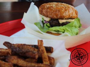 Eine Halle ist mit „Mad Giant“ betitelt. Hier bekommt man Burger und selbstgebrautes Bier. Das Bier wird in der Halle selbst gebraut und das riecht man auch ein wenig. Der „Mad Giant“ hat auch einen „Beer Garden“, wo man auch draußen sitzen kann. Dort hat Torben einen Burger („Venison Burger“ mit Meerrettich, Gewürzgurken und roten Zwiebeln für R75 (ca. 5€)) und Viviane Süßkartoffel-Pommes (R20 (ca. 1€)) gegessen. Außerdem hatte Vivi noch eine Cola (R16 (ca. 1€) und Torben ein Bier (R26 (ca. 2€). Der Burger und die Pommes waren sehr lecker! 🙂