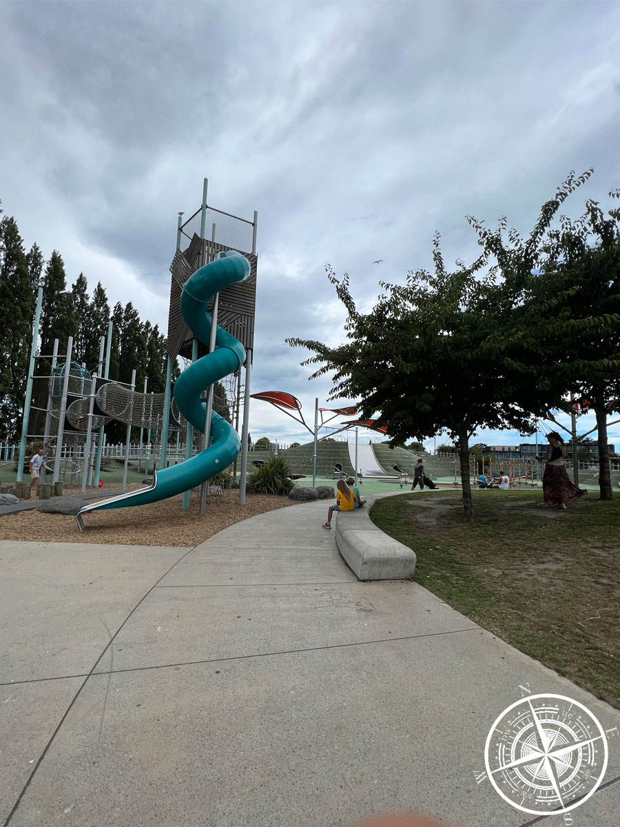 Und wie sollte es anders sein, sind wir natürlich auch zu einem Spielplatz. „The Margaret Mahy Family Playground“ ist riesig und wohl auch sehr beliebt. Es gibt verschiedene Bereich mit verschiedenen Rutschen, Schaukeln, einem Wasserspielbereich und ganz viel Fläche um zu rennen und zu klettern. Es gibt auch ein paar „Foodtrucks“, die hier wohl immer stehen (Eis, Kaffee, Snacks, etc.).