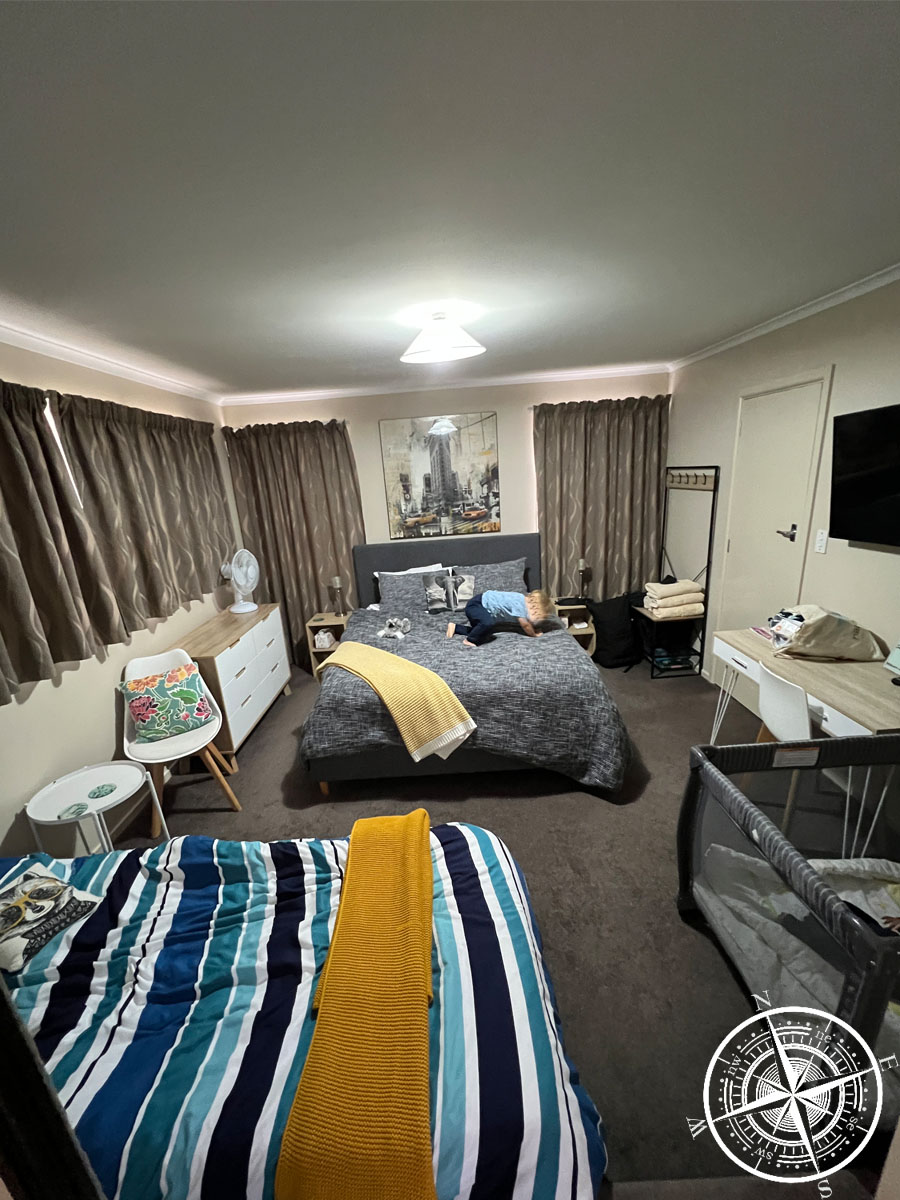 Unser Flug verspätete sich ja um knapp zwei Stunden und zudem war ja nochmal Zeitverschiebung +2 Stunden, daher kamen wir erst spät nach Mitternacht in „Christchurch“ an. Beide Kinder schliefen nicht wirklich während des Fluges, aber sie haben es weitestgehend gut gemeistert (zum Ende kippte die Stimmung schon immer wieder bei beiden) und bekamen von der Crew, sowie anderen Passagieren ganz viel Lob, wie gut sie den Flug gemacht haben.