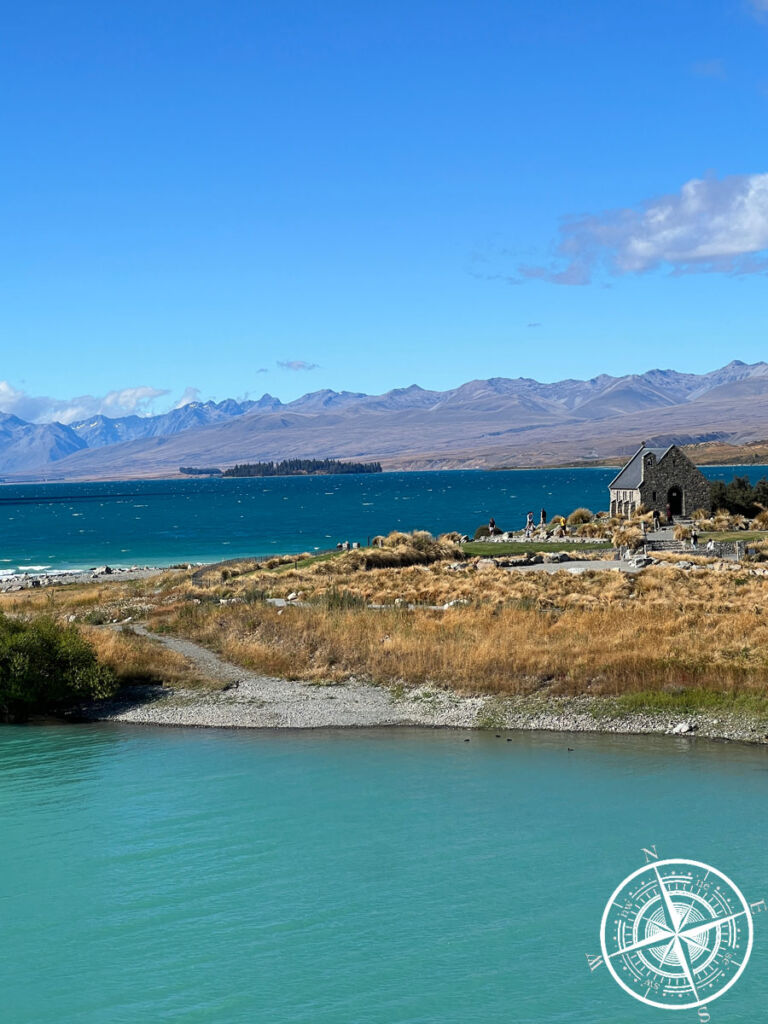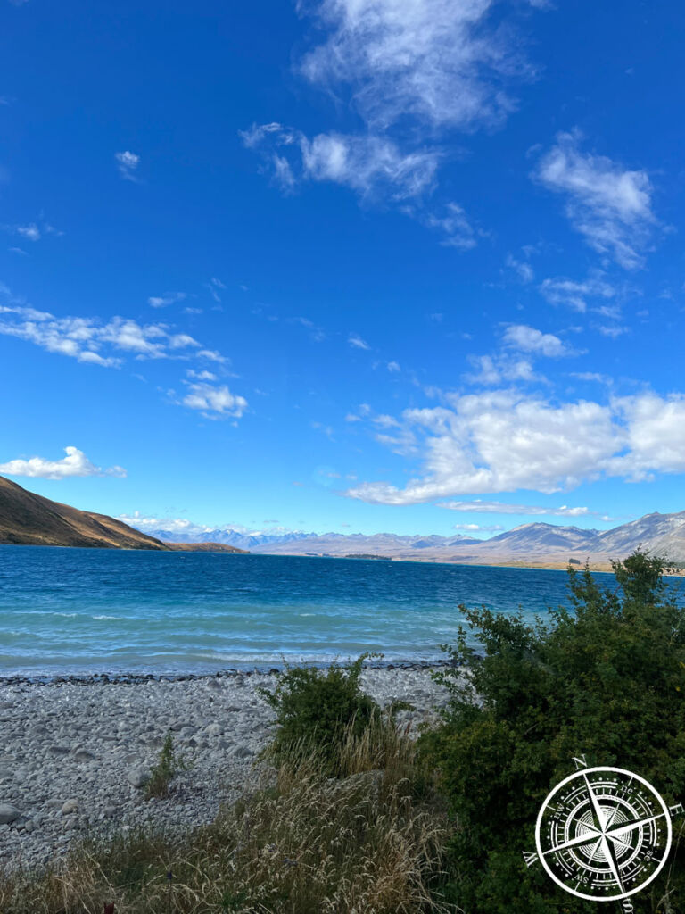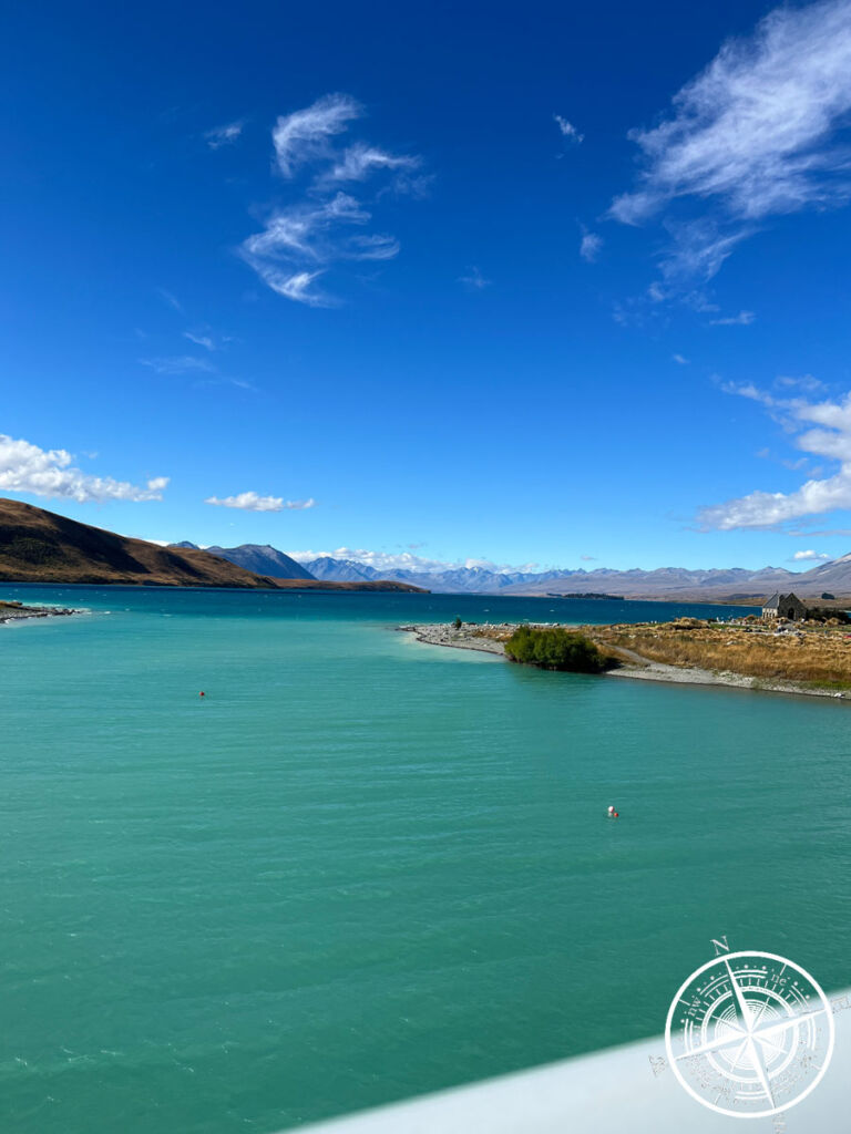 Erst sieht man nur die Bäume des „Lake Tekapo Regional Park“ und dann erstrahlt das schöne türkis des Sees „Lake Tekapo“. Wow! So Schön, da kommt man aus dem Staunen nicht mehr raus. Die Stadt selbst ist sehr überschaubar und hat nur wenige Geschäfte und Restaurants.