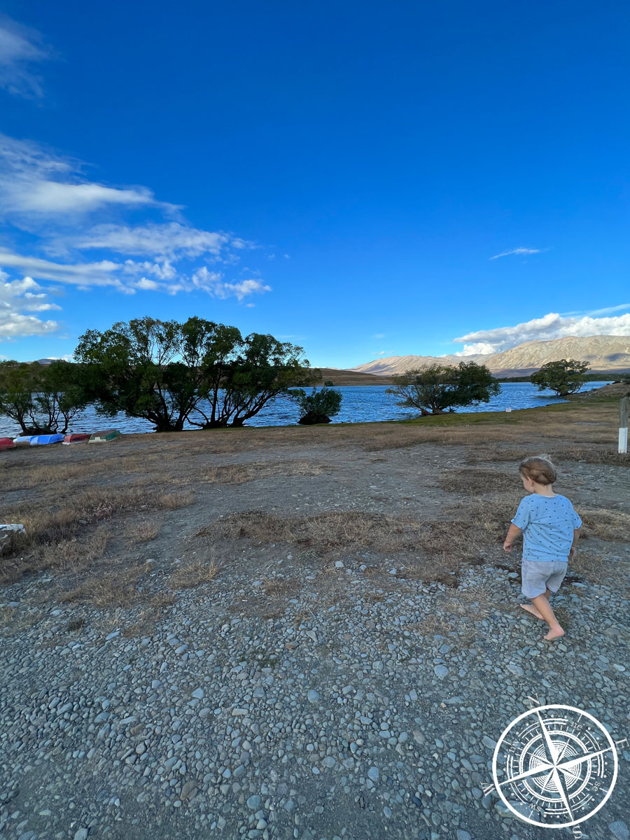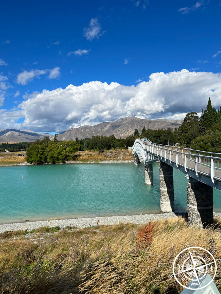 Für uns ging es dann wieder ein Stück zurück mit dem Camper und wir parkten beim „Good Sheperd Car Park“ um dann einen schönen Blick auf den See auf der „Maclaren Footbridge“ zu haben. Von hier aus sieht man auch schon die „Church of the Good Shepherd“. Während Vivi mit unserem Sohn über die Brücke zur Kirche gelaufen ist, ist Torben mit dem Camper dort direkt hingefahren, da unsere Tochter gerade noch schlief.