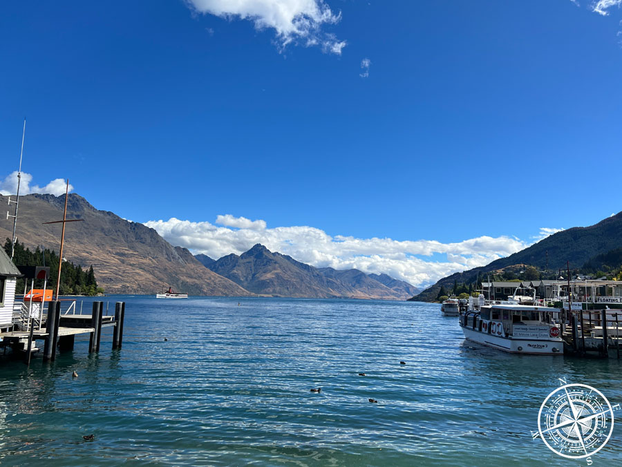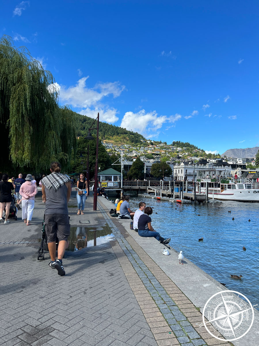 Wir hatten nur eine grobe Route und sind erstmal drauf losgeschlendert. Es ging am Hafen vorbei und dann entlang des „Lake Wakatipu“. Der Ausblick auf den See und die Berge war schön, aber es war auch ziemlich windig. Wir drehten dann irgendwann wieder in Richtung Stadt um. Nach einem kurzen Stopp auf einem kleinen Spielplatz, ging es weiter. In der Stadt war aufgrund des Feiertages gut was los. Die Geschäfte hatten soweit normal auf, aber es wurde einem 10-20% Aufpreis für den Feiertag berechnet, was wir so bisher noch nicht kannten.