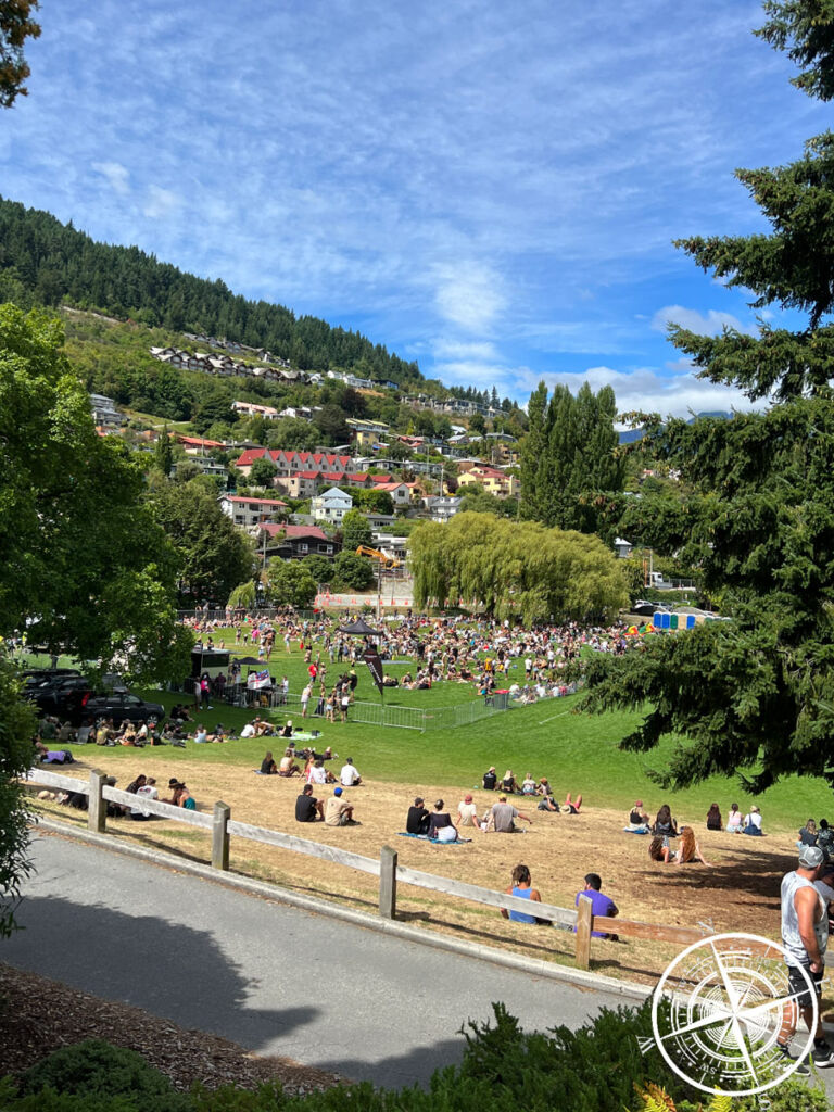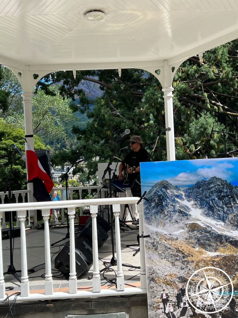 Hier und da gab es Programm, wie zum Beispiel im „Queenstown Gardens“. Das Wetter wurde immer besser und wir hörten schon Musik und gingen dann hoch zum Garten, wo sich mehrere Menschen ansammelten. Auf einer kleinen Bühne hat jemand Musik gemacht und verschiedene Stände waren aufgebaut. An einem konnte man sich sogar ein „Ta Moko“ (ein traditionelles Tattoo der Maori) aufkleben lassen, was wir etwas irritierend fanden. Es gab auch Infostände und eine Info-Tafel über den „Waitangi Day“ und den Vertrag.