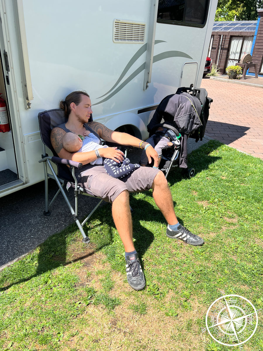 Da beide Kids eingeschlafen waren, sind wir erstmal zurück zum Campingplatz, wo dann einer sich bei den Kids ausruhte, während der andere duschen war und dann wurde gewechselt. Timing ist alles!