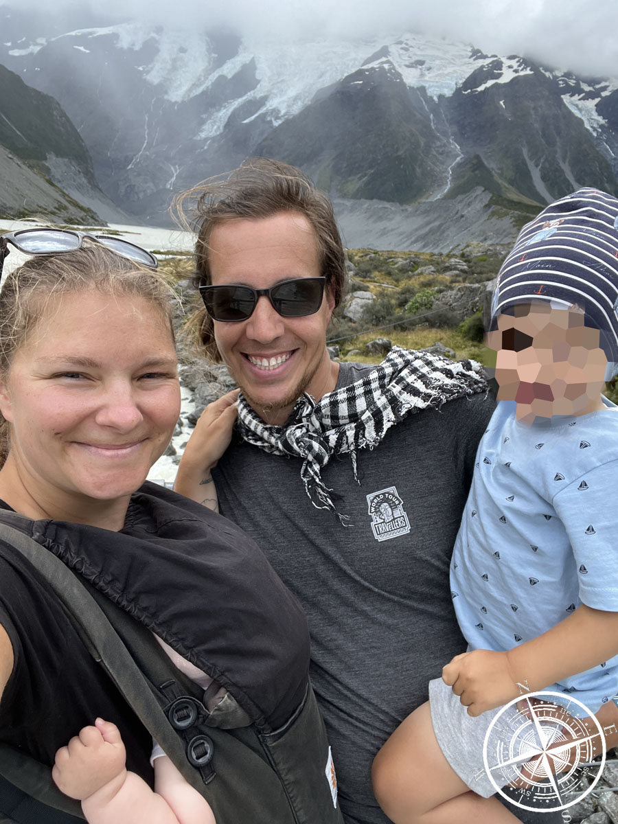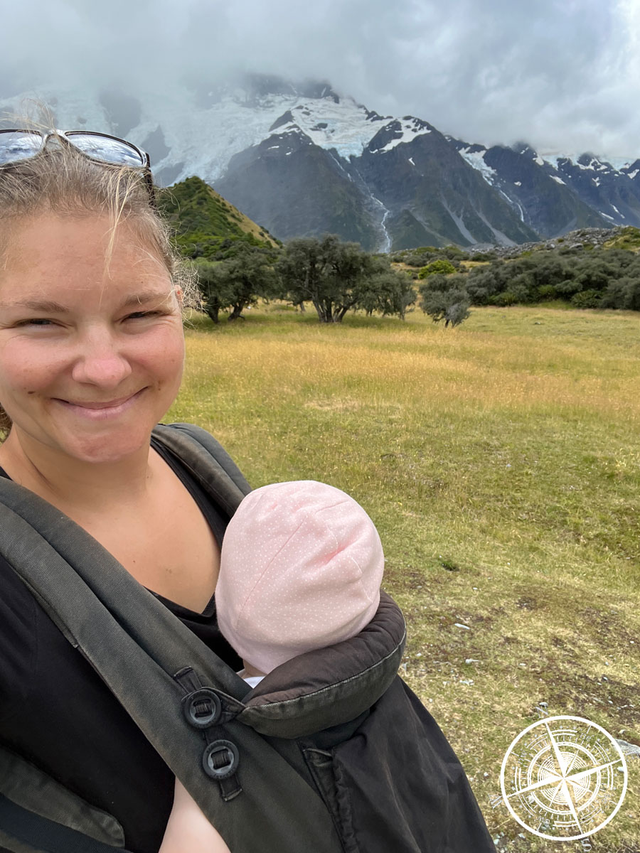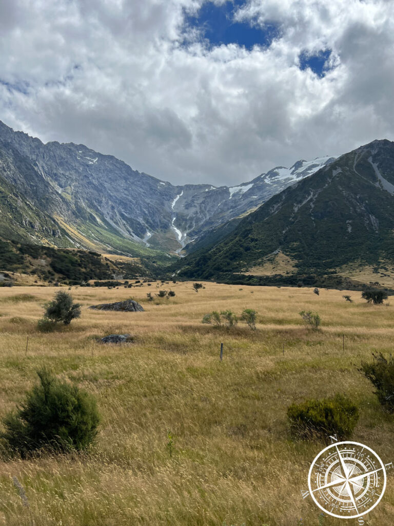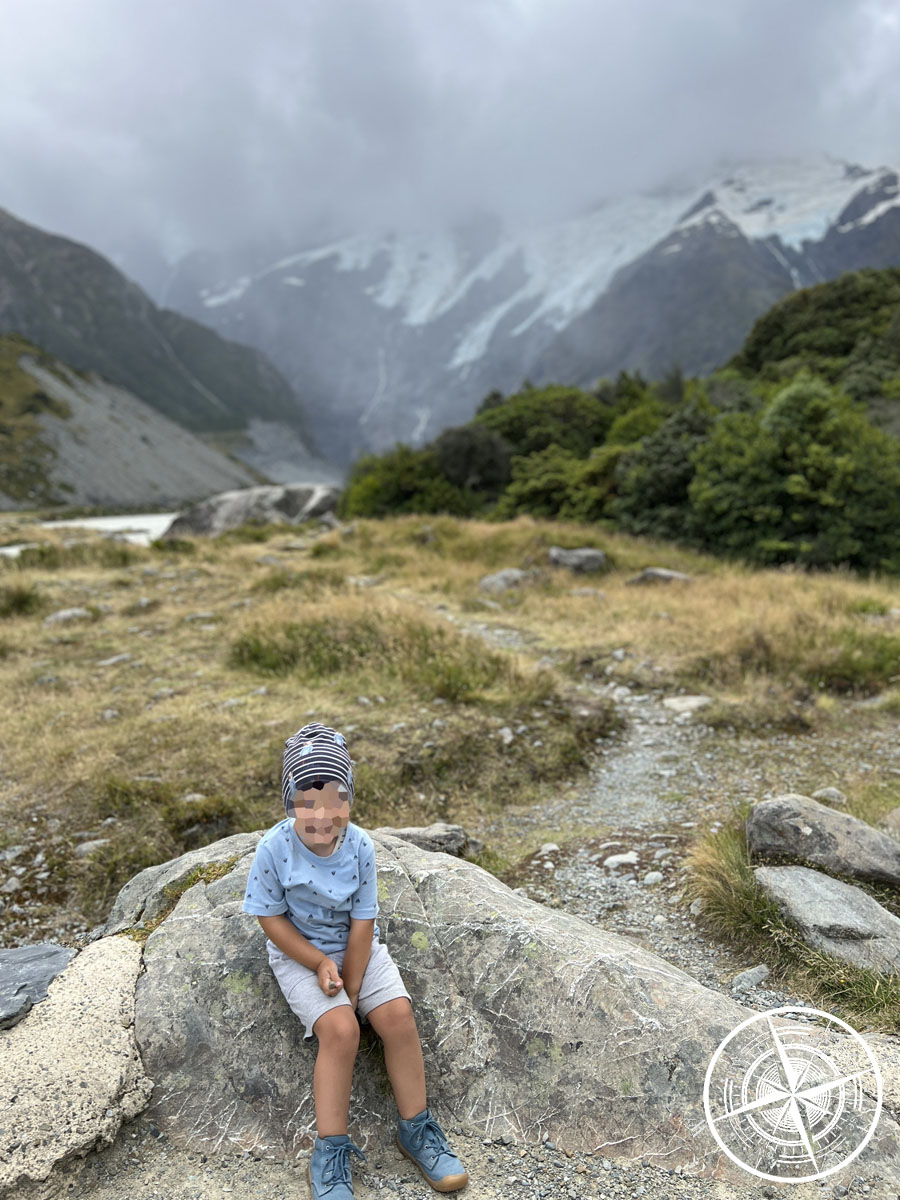 Funfact: Wir dachten übrigens die ganze Zeit, dass das der „Mount Cook“ ist, aber haben dann irgendwann nochmal genauer recherchiert und rausgefunden, dass es der „Mount Sefton“ ist. Naja. Aber bei so vielen Bergen kann man schon mal durcheinanderkommen und Google Maps ist da auch nicht immer so zuverlässig. Der Berg war aber mit den Schneemassen auch sehr beeindruckend! Wäre man dem „Hooker Valley Track“ bis zum Ende gefolgt, hätte man auch Aussicht auf den „Mount Cook“ gehabt!