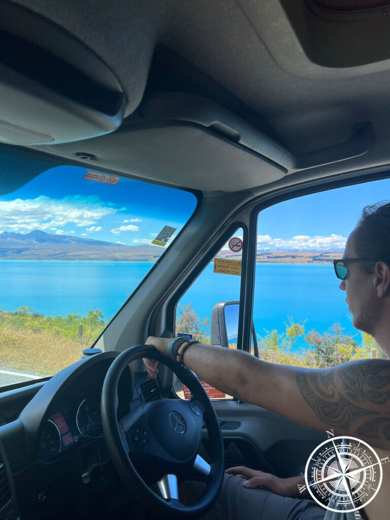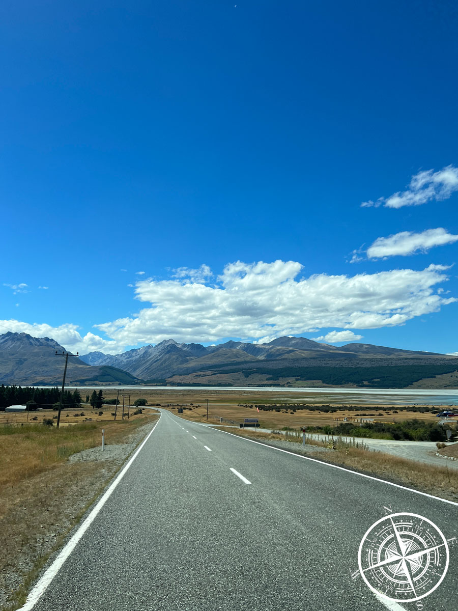 Von „Twizel“ ging unsere Fahrt dann weiter zu unserem Campingplatz. Auch diese Fahrt dauerte knapp eine Stunde, aber kam uns kaum so vor, denn dieser Weg führte uns fast komplett entlang des „Lake Pukaki“ bis hin zu den Bergen – dem „Mount Cook National Park“.
