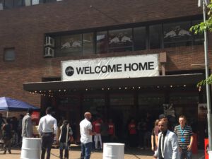 Bei Hillsong angekommen, standen viele Menschen draußen und unterhielten sich. Wir wurden herzlich begrüßt und kamen mit verschiedenen Menschen in Kontakt, die sehr an uns interessiert waren.