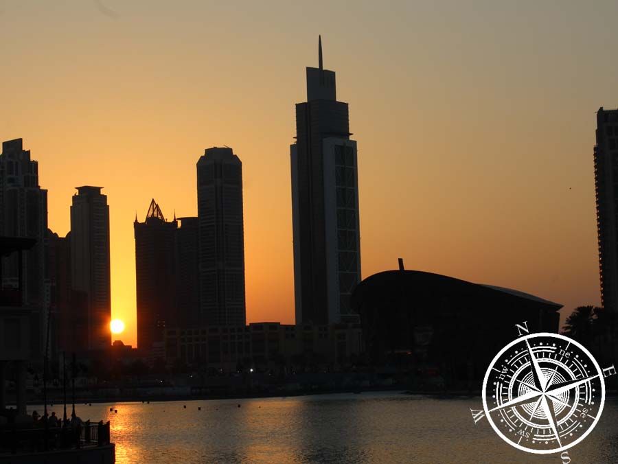 Es ist alles sehr beeindruckend hier! Die großen Hochhäuser und die Art, wie fast jedes ganz anders aussieht. Wirklich eindrucksvoll! Ebenso auch das „Burj Khalifa„. Nicht umsonst ist es das größte Gebäude der Welt, denn man bekommt es kaum auf ein Foto! Wir sind dann weiter, um zu den Wasserspielen zu kommen. Dank der neuen Sim Karte schauten wir die Vorführungszeiten online nach. Es war noch eine Stunde bis die Wasserspiele beginnen und diese Zeit nutzen wir, um uns einen guten Platz zu suchen und Fotos von den Gebäuden inkl. Sonnenuntergang zu machen. Rundherum um die Wasseranlage füllten sich die Menschenmengen – Hier war ganz schön was los!