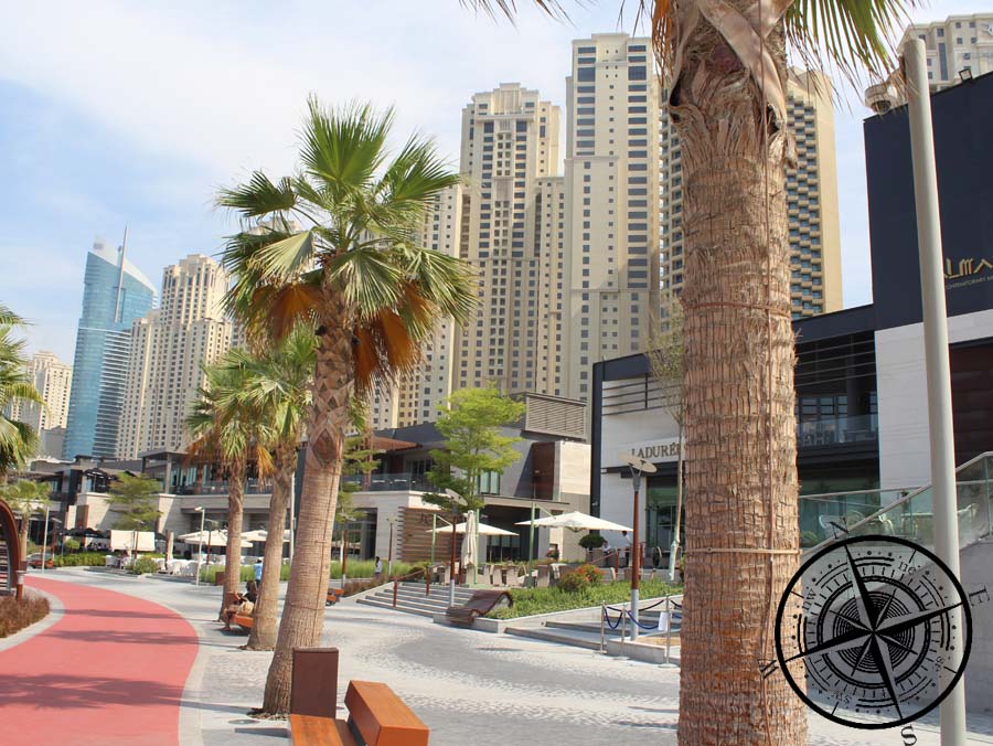 „Jumeirah Beach Residence“ (Kurz: JBR) befindet sich im Stadtteil der Dubai Marina und es handelt sich hier um mehrere Hotel- & Wohnkomplexe, sowie dem dort vorzufindenen öffentlichen Strand. Es ist eben wie im Urlaub: links der Strand und das Wasser und rechts verschiedene Geschäfte und Restaurants. Der Strand ist wirklich sehr schön mit weichem Sand und türkisenem Wasser.