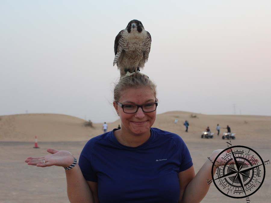 Der Typ mit dem Falken kam auch direkt auf uns zu und wir wollten unbedingt mit dem Falken ein Foto machen und dachten auch, dass es inklusive ist. Der Mann teilte uns aber dann mit, dass es DHS 10 (ca. 2,50€) kostet. Da wir uns das aber nicht entgehen lassen wollten, willigten wir ein. Torben bekam den Falken auf den Arm und die Schulter und bei Vivi war er auf der Schulter, dem Kopf und dem Arm. Ein interessantes Erlebnis und die Fotos sind super! 🙂