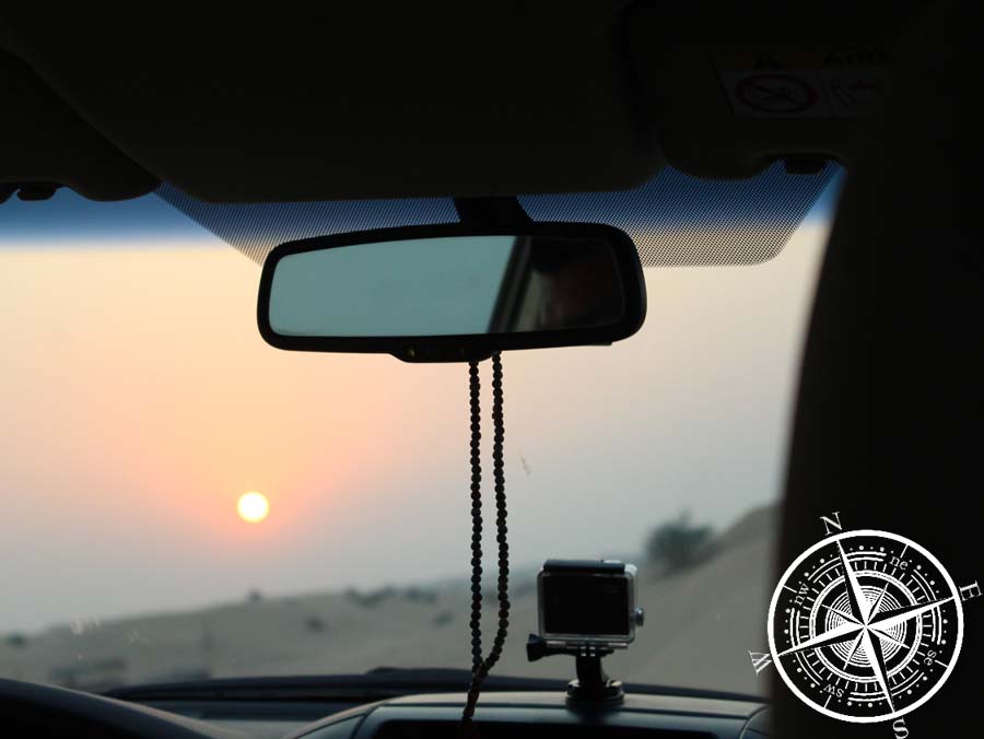 Heute stand also die „Desert Safari“ auf dem Plan. Um 15:30 Uhr sollten wir vor dem Hotel stehen und abgeholt werden. Wir waren pünktlich vor Ort, aber (fast wie zu erwarten) kam niemand. Da das Hotel zwei Eingänge hat, teilten wir uns auf, damit wir den Shuttle nicht verpassen. Nach einer halben Stunde Wartezeit, schrieb Torben eine Mail an die Agentur und bekam kurz darauf eine Rückmeldung, dass der Fahrer wohl im Stau stand, aber in 10-15 Minuten da sein sollte. Um 16:15 Uhr war der Fahrer dann da, wir stiegen ein und los ging es. Mit uns war noch ein Paar aus Indien und ein Paar aus Texas dabei.