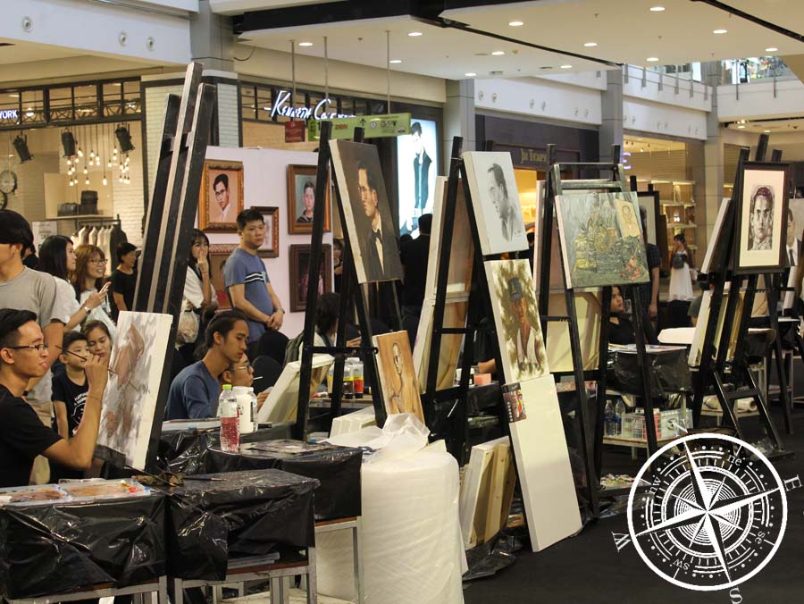 Im unteren Teil des Einkaufszentrums gab es auf einer großen freien Fläche eine Art Kunstausstellung. Gemalte Portraits des verstorbenen Königs wurden ausgestellt und in der Mitte saßen einige, die auf einer Leinwand selbst ein Bild vom König malten. Die Bilder waren alle unterschiedlich und es waren wirklich tolle Bilder! Die Atmosphäre war auch ganz besonders und wir fanden diese Art, dem König Ehre entgegen zu bringen, sehr wertschätzend!