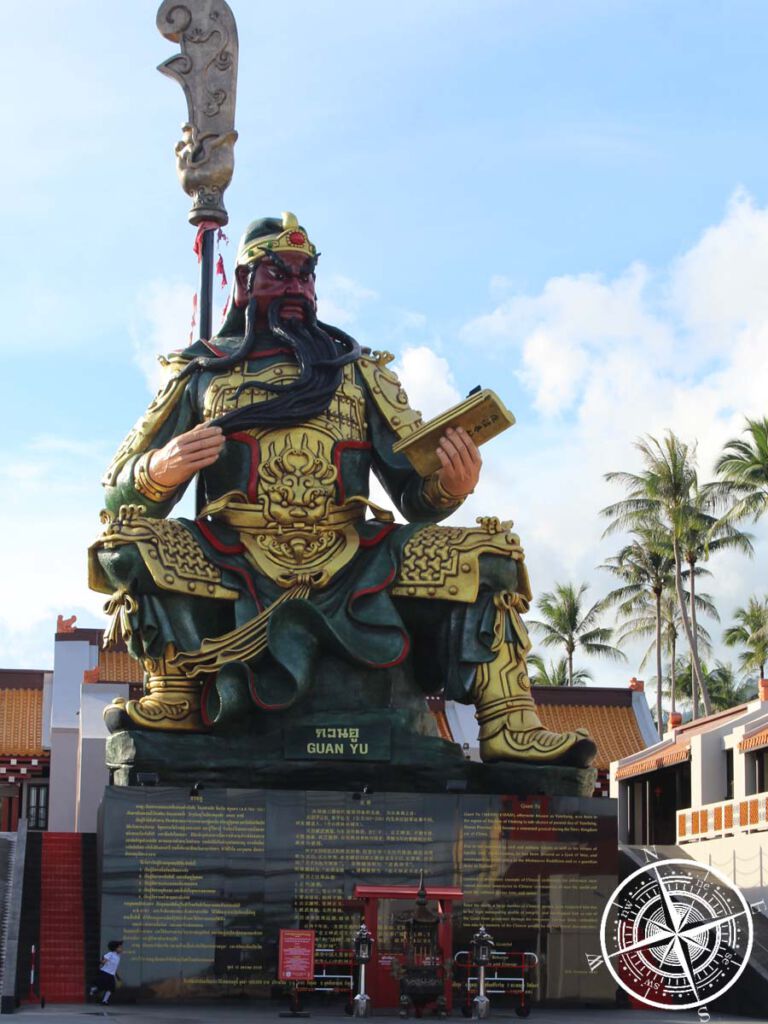 Wir fuhren quasi wieder den Weg zurück und hielten kurz an einer Stelle. Vivi hatte dort bei der Hinfahrt eine große Statue gesehen. Es handelte sich hierbei, um die „Guan Yu Koh Samui Shrine„. Eine große asiatische Krieger-Statue – wirklich gigantisch!