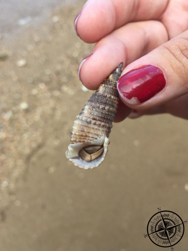 Auf dem Weg sahen wir viele verschiedene Muscheln und Vivi sammelte ein paar davon. Als sie eine besonders hübsche Muschel fand und sie umdrehte, um den Sand rauszumachen, blickte sie auf die Schere eines Krebses. Diese bewegte sich dann auch noch leicht und so beschloss Vivi die Muscheln wieder vorsichtig auf den Boden zu legen und dem Krebs diese schöne Muscheln zu überlassen.