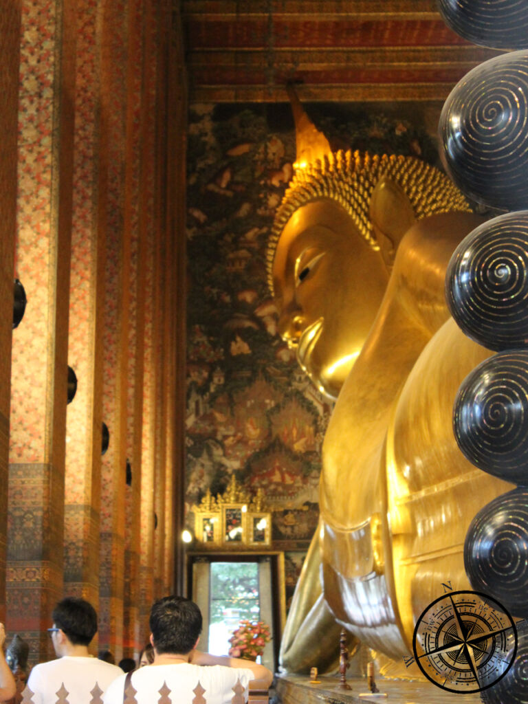 In Thailand ist der Buddhismus die Landesreligion. Sie taucht überall auf, denn die vielen Tempel lenken die Aufmerksamkeit auf sich. Tempelanlagen dürfen nur mit angemessener Kleidung (Schultern und Knie bedeckt) und ohne Schuhe betreten werden. In Thailand gibt es eine Vielzahl von Mönchen, die durch ihe organgene Kutte stark auffallen. Neben der gängigen Buddah-Statue gibt es noch weitere, die Teil des Buddhismus sind. Man bekommt auf jeden Fall einen Einblick in die Religion, wenn man die Tempel besucht, wie z.B. den Wat Pho in Bangkok.