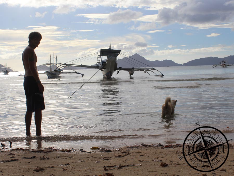 Der Tag war noch lang und wir wollten die Zeit nutzen. Da uns der Strand in El Nido mit all seinen Booten und Menschen, sowie Verkäufern, zu voll waren, entschieden wir uns zu einem Spaziergang zum Corong Corong Beach. Hier war auch unserer erste Unterkunft und wir erhofften uns in den Genuss des Sonnenuntergangs zu kommen. Also ging es zurück zur Unterkunft, Notwendiges einpacken und Torben hat sich direkt die Badesachen wieder angezogen.