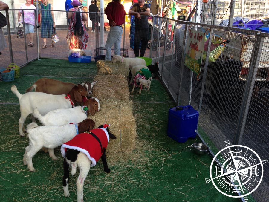 … kann man auf jeden Fall nicht mit einem deutschen Weihnachtsmarkt vergleichen. Der Weihnachtsmarkt fand in der „Mary Street“ statt und überall gab es kleine Verkaufsstände mit vielen selbstgemachten Sachen. Außerdem gab es auch einen kleinen Stand, wo man Ziegen, Küken und Babyschweinchen streicheln konnte. Sie Schweinchen waren wirklich besonders süß! Alle fünf Meter gab es jemanden der Musik machte, entweder nur mit einer Gitarre als Solist oder ein kleiner Chor. Das brachte irgendwie eine besondere Stimmung in das Ganze!