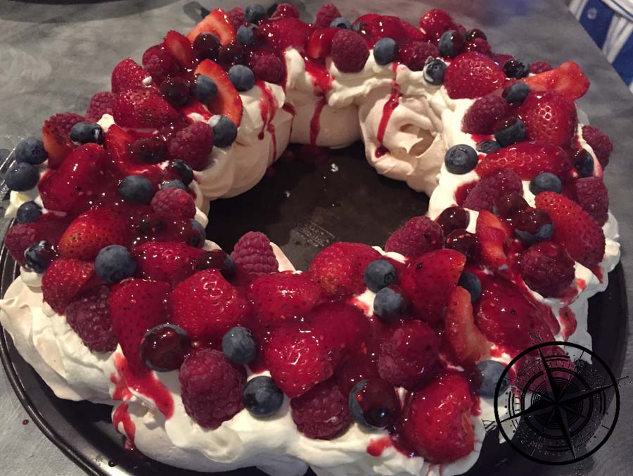 Und dann folgte das große Weihnachtsessen. Ein Buffet wurde wieder aufgetischt. Es gab verschiedenes Ofengemüse, gegrillte Süßkartoffeln, Pork, Hähnchen, Garnelen und Salate. Zum Nachtisch gab es dann noch einen englischen Pudding (Kuchen) und eine Pavlova. Sehr lecker!!! 🙂