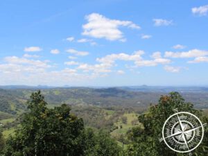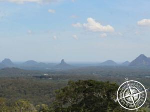 Nach einem leckeren Mittagessen und einer schönen Zeit in Montville, ging es mit dem Auto in Richtung Maleny. Da es in Maleny selbst nicht viel zu sehen gibt, ließen wir die Stadt selbst aus, aber fuhren die „Mountain View Road“ entlang, denn von hier aus hat man einen Ausblick über das Hinterland und auf die „Glass House Mountains“.