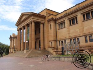 Unser Weg führte voebei an der großen „State Libary“ (Bücherei) zur „Art Gallery of NSW„. Normaler Weise sind wir nicht so Museums- und Kunstbegeisterten, aber die „Art Gallery“ wurde uns bereits empfohlen und so wagten wir es mal. Der Eintritt ist kostenfrei (außer für besondere Ausstellungen). Uns interessierte vor allem die australische Kunst der Aborigines. Es ist eine besondere Kunstart und einige Bilder waren wirklich sehr schön.