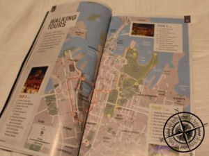 Als wir über Neujahr in Sydney waren, haben wir ausversehen den Reiseführer zu Sydney von unseren Gastgebern mitgenommen. Da sie ihn aber selbst nicht mehr benötigten (da sie kurz nach unserem Aufenthalt selbst auf Reisen gehen und dann zurück in die Staaten ziehen), war es nicht weiter schlimm. Somit konnten wir diesen Tourguide auch für diesen Aufenthalt nutzen.