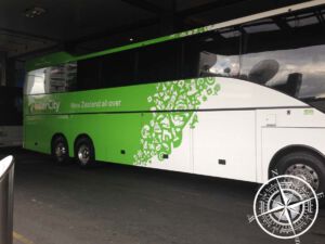 Die Fahrt dauerte knapp 45 Minuten und dann waren wir an unserem Ziel angekommen – der Busbahnhof von InterCity. Wir werden ein anderes Mal genauer darauf eingehen, aber nun nur kurz: Wir wollten eigentlich mit dem Auto durch Neuseeland reisen, aber wir haben uns für verschiedene Busunternehmen entschieden. Unter anderem: „Intercity“