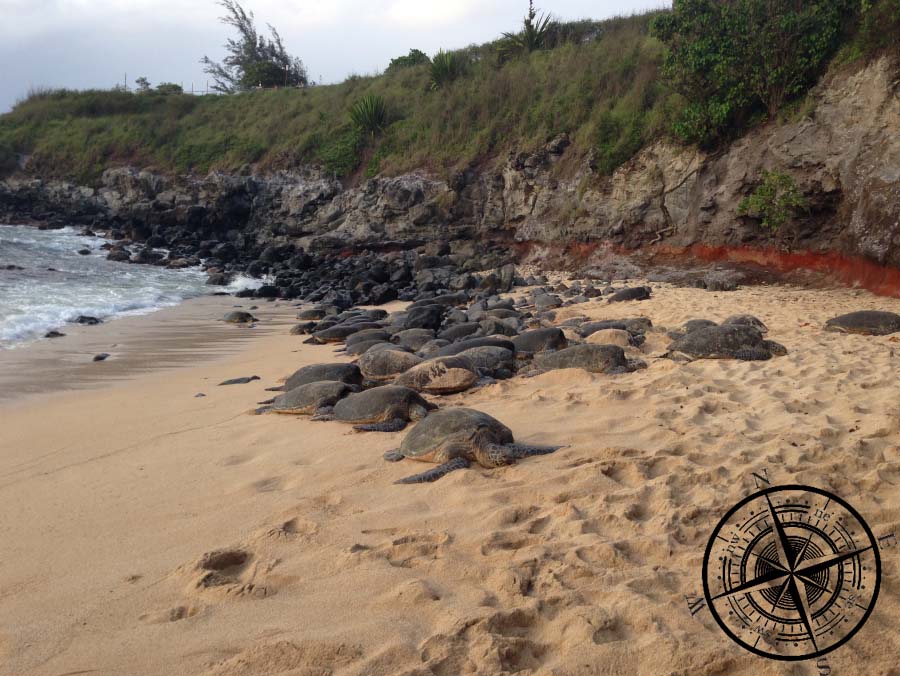 Als wir dort ankamen waren schon sehr viele Hono am hinteren Bereich des Strandes im nördlichen Maui. Gegen Abend wurden es immer mehr und am Ende lagen dort 107 Schildkröten, die sich dort für die Nacht zum Schlafen einen Platz gesucht hatten. Unglaublich – 107 Schildkröten! So viele hatten wir nicht erwartet und auch Ian meinte, dass es schon lange nicht mehr so viele waren, oftmals sind es 30-40 im Durchschnitt. Es war schön mitzuhelfen und auch am Folgetag hatten wir nochmal für ein paar Stunden geholfen.