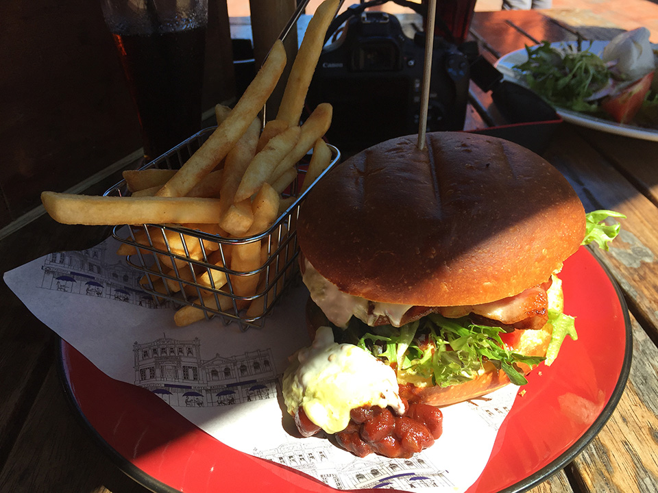 Das Restaurant „Hotel Bristol“ hatte eine überzeugende Auswahl an verschiedensten Gerichten, sodass Vivi sich für einen vegetarischen Burrito entschied und ich bei der Wahl bei einem Burger hängen blieb. Ein Mix aus Chilli con Carne und Burger ist mir nicht unbedingt neu, doch weckte am ehesten mein Interesse.